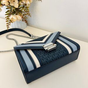 Michael Kors Whitney Medium Flap Chain Crossbody Shoulder Bag Navy Multi