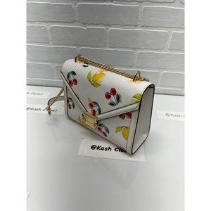Michael Kors Whitney Medium Sequined Fruit Print Shoulder Bag Purse Optic White