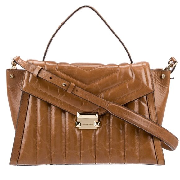 Michael Kors Whitney Tan Quilted Leather Large Satchel Handbag