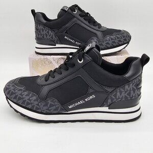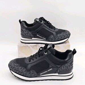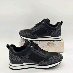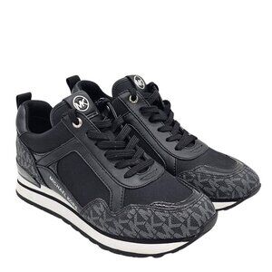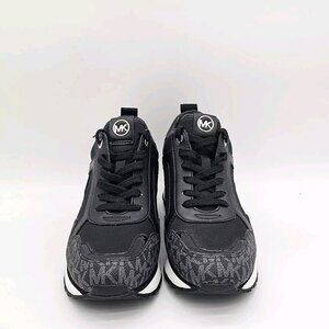 Michael Kors Wilma Logo Trainer Womens Sneakers 7 Black MK Monogram Gym Workout