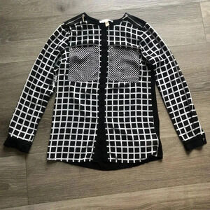 Michael Kors Window Pane Checkered Semi Sheer Long Sleeve Blouse Size XS