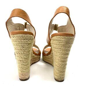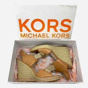 Michael Kors Windsor Platform Wedge Espadrille Sandals Tan Leather, Size 9M IOB