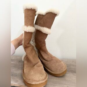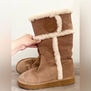 Michael Kors Winter Tall Suede Boots Walnut - size 9 sheep fur
