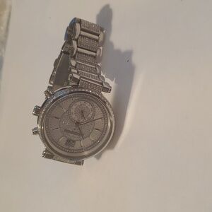 micheal kors Elegant silver watch with crystal embellishments. Perfect for adding sparkle to any outfit.