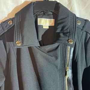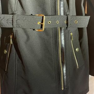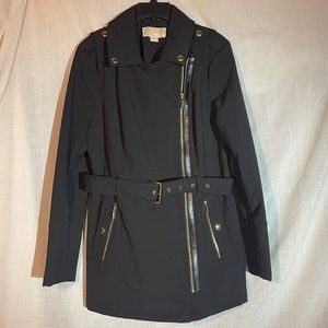 Michael Kors Woman's Jacket Black. Gold zippers and buttons. Belted, Lined Med