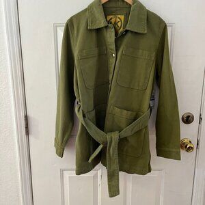 Michael Kors Woman's Olive Green Short Military Utility Trench Coat Sz XL