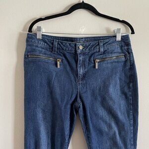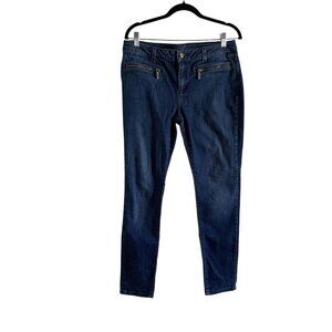 Michael Kors Women 8 Blue Dark Wash Front Zipper Slit Pocket Skinny Denim Jeans