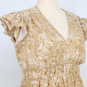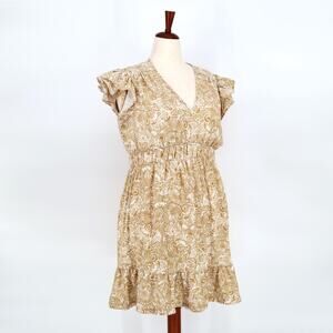 Michael Kors Women Beige Paisley Boho Flutter-Sleeve Ruffle Mini Dress Size L