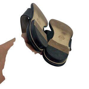 Michael Kors Women Black Leather Thong Sandals W/ Gold Logo Size 9.5M