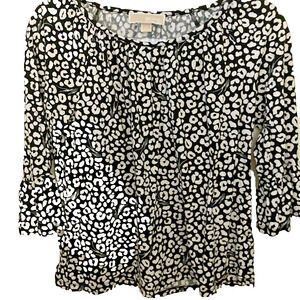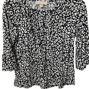 Michael Kors Women Blouse Size Small Black And White Cheetah Print Bell Sleeves