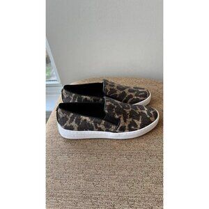 Michael Kors Women Brown Canvas Animal Print Slip On Loafers With MK logo Sz 8