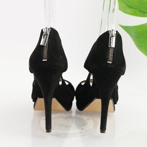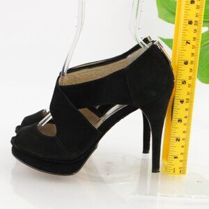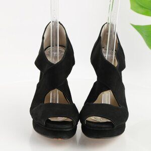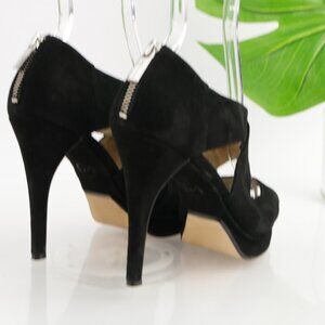 Michael Kors Women Elena Sandal Size 7.5 Black Suede Platform Heel Peep Toe Shoe