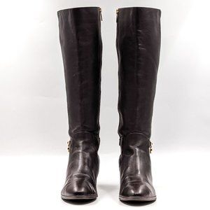 Michael Kors Women Hamilton Stretch Brown Leather Equestrian Riding Boots sz 8.5