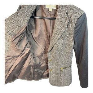 Michael Kors Women Jacket Brown Faux Leather Sleeve Tweed Size 4