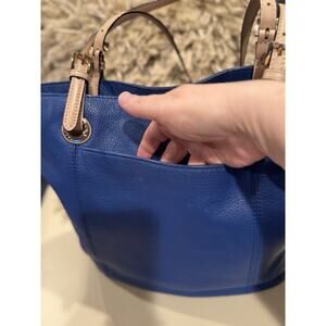 Michael Kors Women Jet Set in Blue Saffiano Leather Zip Tote Bag with Logo Charm