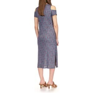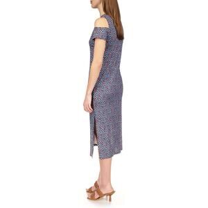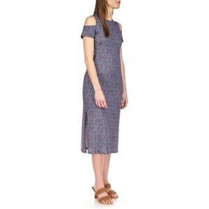 Michael Kors Women Navy Palm Cotton Casual Cold-Shoulder Midi Dress Size S