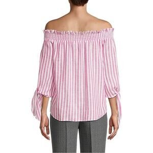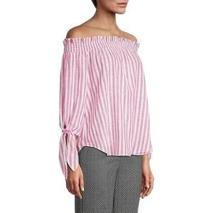 Michael Kors Women Pink Stripe Cerise Linen Off-the-Shoulder Blouse Top Size XS