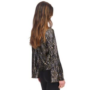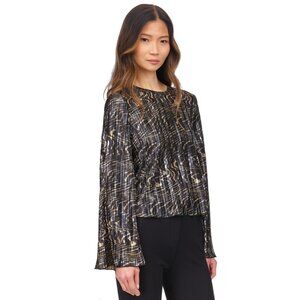 Michael Kors Women Printed Pleated Bell-Sleeve Top Black Gold Size XL MSRP $110