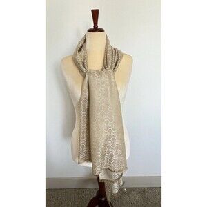 Michael Kors Women Scarf MK Logo Gold/Cream Reversible 24”W X 72” L