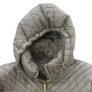 Michael Kors Women Tan Medium Lightweight Diamond Quilted Hooded Down Fill Coat