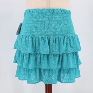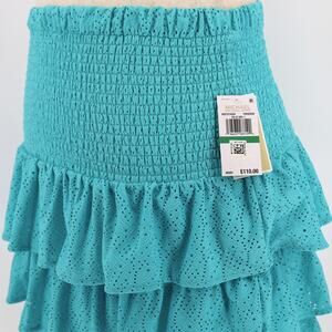 Michael Kors Women Turquoise Eyelet Jersey Preppy Tiered Mini Skirt Size L