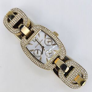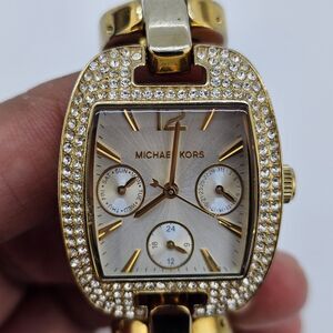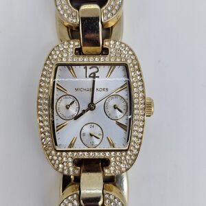 Michael Kors Women Watch 28MM Gray Dial Gold Band 5.75" New Battery HEAVY WATCH