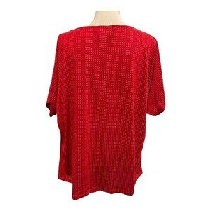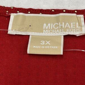 Michael Kors Womens 3X Tunic Top Red Gold Studded Drape Neck Short Cap Sleeve