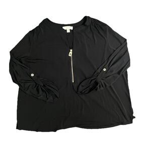 Michael Kors Womens 3XL Black Zip Front Roll Tab Sleeve Blouse Top Lightweight
