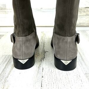 Michael Kors Women’s 5.5 Gray Suede Fabric Logo Heel Zip Calf Riding Boots NWB