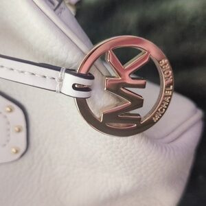 This beautiful hardly used Micheal Kors leather creamy purse with golden accents is in perfect condition. Comes with a cross body strap.