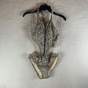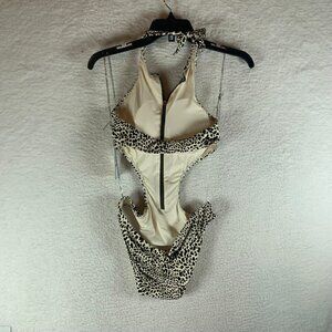 Michael Kors Women's Animal Print Zip Front Cut Out One Piece Swimsuit Size 10 NWT