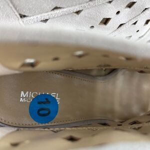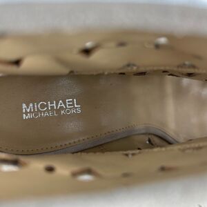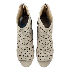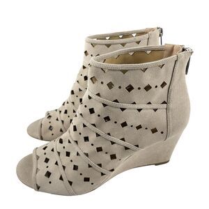 Michael Kors Women's Ankle Wedge Booties Size 10M Taupe Suede Cutout Peep Toe