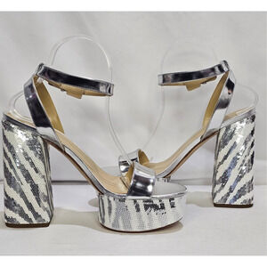 Michael Kors Women's Ashton Sequin Zebra Print Platform Sandal Size 8.5 NWT