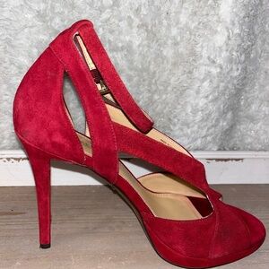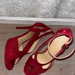 Michael Kors Womens Becky Sandal Size 8 Red Suede High Heel Strappy Ankle Strap