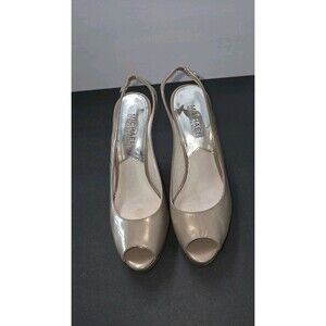 Michael Kors Women's Beige Patent Leather Slingback Peep Toe Heel Used size 6M