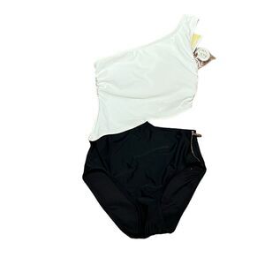 Michael Kors Women’s Black And White One Shoulder Cut Out Swimsuit, Size 4, NWT