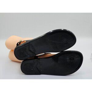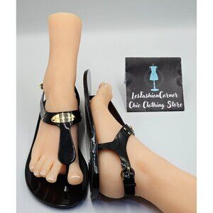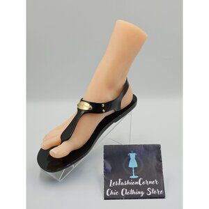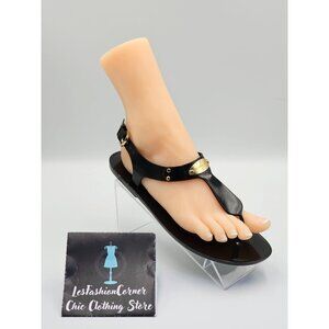 Michael Kors Women's Black Jelly Gold Logo Plate Thong Sandals Size 8M 2648