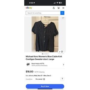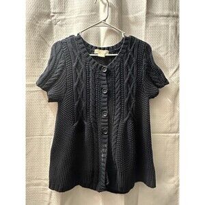Michael Kors Women's Black Cable Knit Cardigan Sweater size L Large