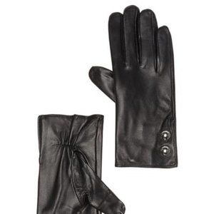 Michael Kors Womens Black Leather Silver Logo Dome Button Gloves Sz L NWT