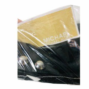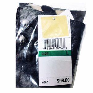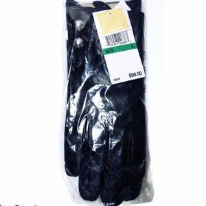 Michael Kors Black Leather Silver Logo Dome Button Gloves Sz L NWT
