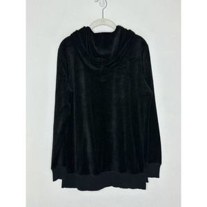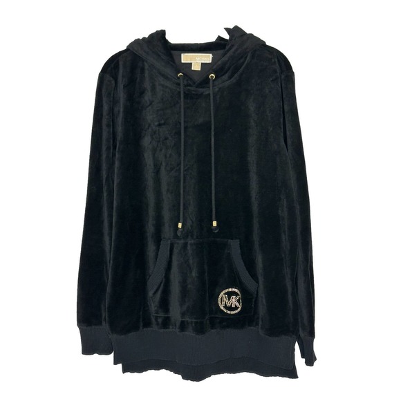 Michael Kors Womens Black Logo Drawstring Long Pullover Velvet Hoodie Sz L