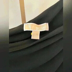 Turn heads at your next event with this stunning MICHAEL Michael Kors one-shoulder cocktail dress. The sleek black fabric, a blend of polyester and spandex, hugs your curves in all the right places, while the asymmetrical design adds a modern twist. Ruched detailing enhances the silhouette, creating a flattering and sophisticated look. Perfect for any party or cocktail occasion, this knee-length dress ensures you make a memorable entrance. This pre-owned piece is in excellent condition, ready to bring elegance to your wardrobe.