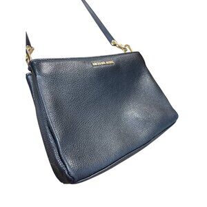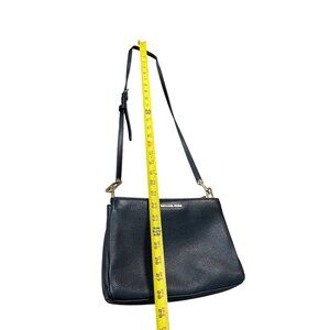 The Michael Kors crossbody handbag presents a chic yet versatile design. Made from pebbled leather, it offers durability and a sophisticated look. Ideal for the modern woman who values both style and functionality. The adjustable strap ensures comfort, while the sleek black finish complements any outfit. No defects noted. In good overall condition in and out. SKU 9221