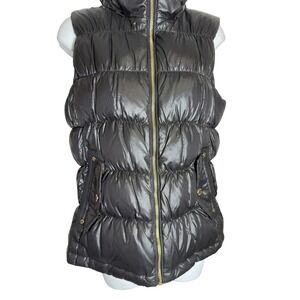 Michael Kors Womens Black Puffer Vest Full Zip Sleeveless Hooded Jacket S