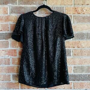 Michael Kors Women's Black Sequin Back Keyhole Short Sleeve Blouse Size Small