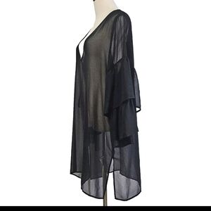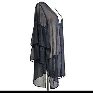 Michael Kors Women's Black Sheer Medium Boho Sheer Ruffle Sleeves Beach Cover Up