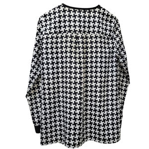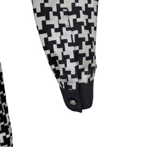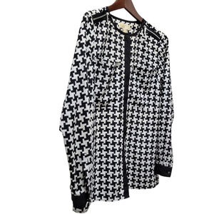 Michael Kors women's blouse in a classic black and white color scheme. The geometric pattern and long casual sleeves add a touch of sophistication, while the round neckline and button closure ensure a comfortable fit. This blouse is perfect for both casual and business occasions, and its lightweight material makes it suitable for all seasons.