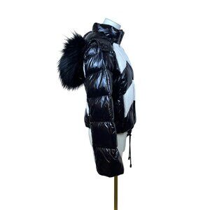 Michael Kors Women's Black & White Nylon Puffer Jacket XXS Hooded Chevron Design