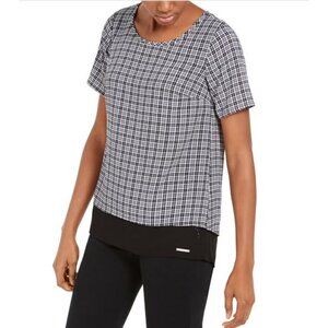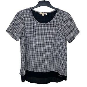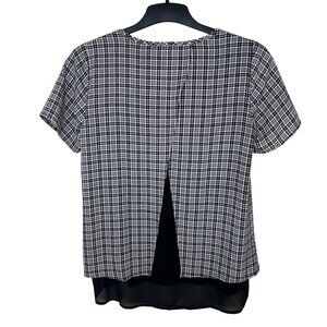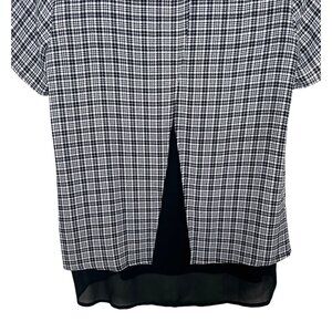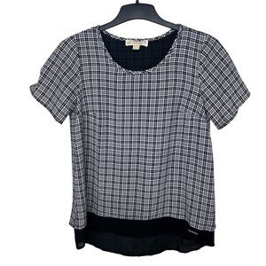 Michael Kors Womens Black & White Plaid Short Sleeve Top With Split Back Medium