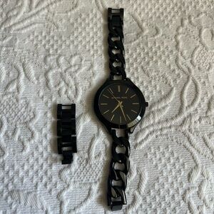 Featuring a sleek black design with elegant gold accents, this accessory is perfect for any occasion